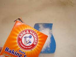 To clean a porcelain sink with baking soda.